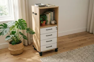 Die Sedus Mobilcontainer machen sich gleich mehrfach nützlich im Büro. Mit ihren unterschiedlichen Einrichtungskomponenten dienen sie als flexibel einsetzbare Stauraum- oder Cateringmöbel, durch ihre Höhe eignen sie sich zugleich zur Zonierung, als Kommunikationselement und als Steharbeitsplatz. Sie sind auch mit Rollladen und einer höheren Rückwand erhältlich, die serienmäßig eine Funktionsschiene enthält.