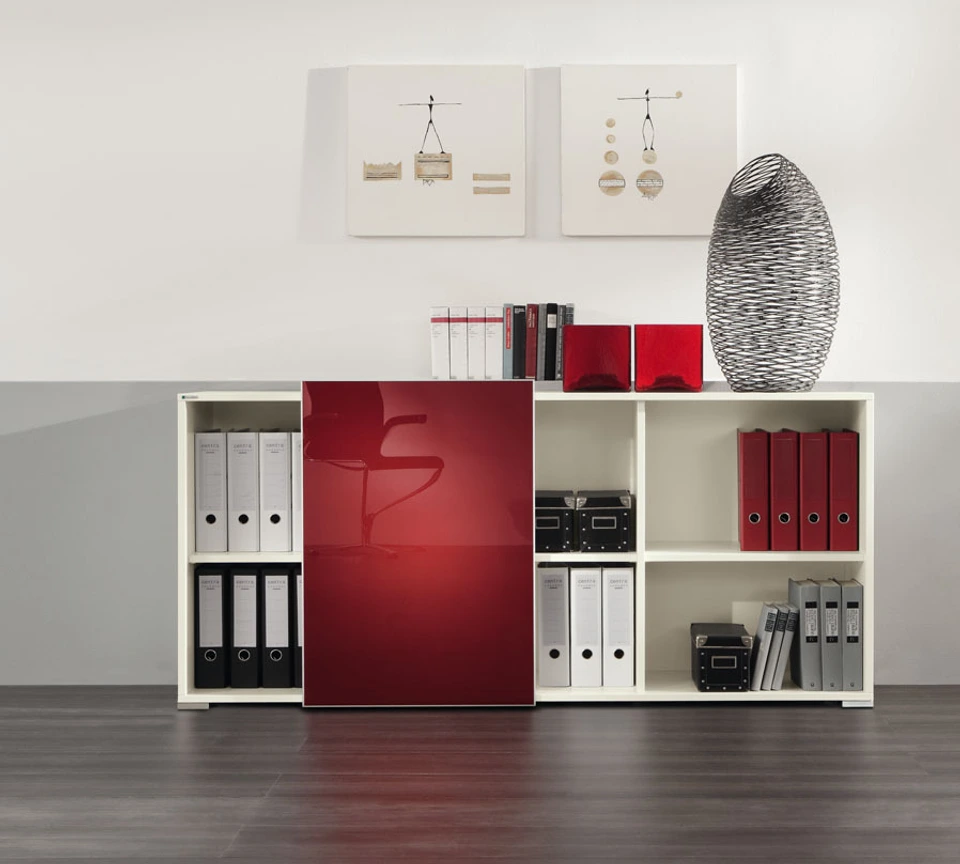Mit dem Schrankprogramm SELECT organisieren Sie die Dinge des täglichen Bürobedarfs auf elegante Weise. Ob als wandgebundener Stauraum, frei im Raum stehendes Trennelement oder als Aufdocklösung in Verbindung mit dem Arbeitsplatzsystem PENSUM oder PALMA – SELECT wird in jeder Situation zum idealen Managementmöbel. Dabei kommt das Stauraumsystem komplett ohne Griffe aus. Ergänzende Aufsatzmodule und passende Wandregal-Lösungen erweitern SELECT für raumhohe Anwendungen jeder Art.