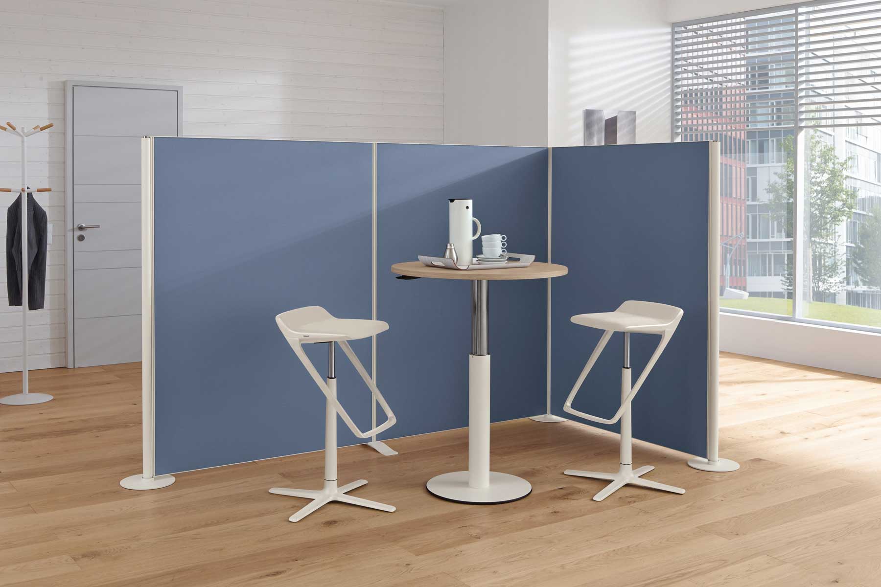 TERIO PLUS ist ein hochwertiges Stellwandsystem mit einer Wandstärke von 35 mm, das für die visuelle und akustische Abschirmung von Arbeitsflächen eingesetzt wird. Ein schlanker umlaufender Aluminiumrahmen bietet dem beidseitig nutzbaren System einen feinen Abschluss, der sich jederzeit dezent in das Gesamtbild eines Arbeitsplatzes integrieren lässt. Dank der großen Flexibilität und der unterschiedlichen Formate können die Wände dabei sowohl fest an Schreibtischen installiert, als auch frei im Raum positioniert und mit weiteren Elementen verbunden werden.