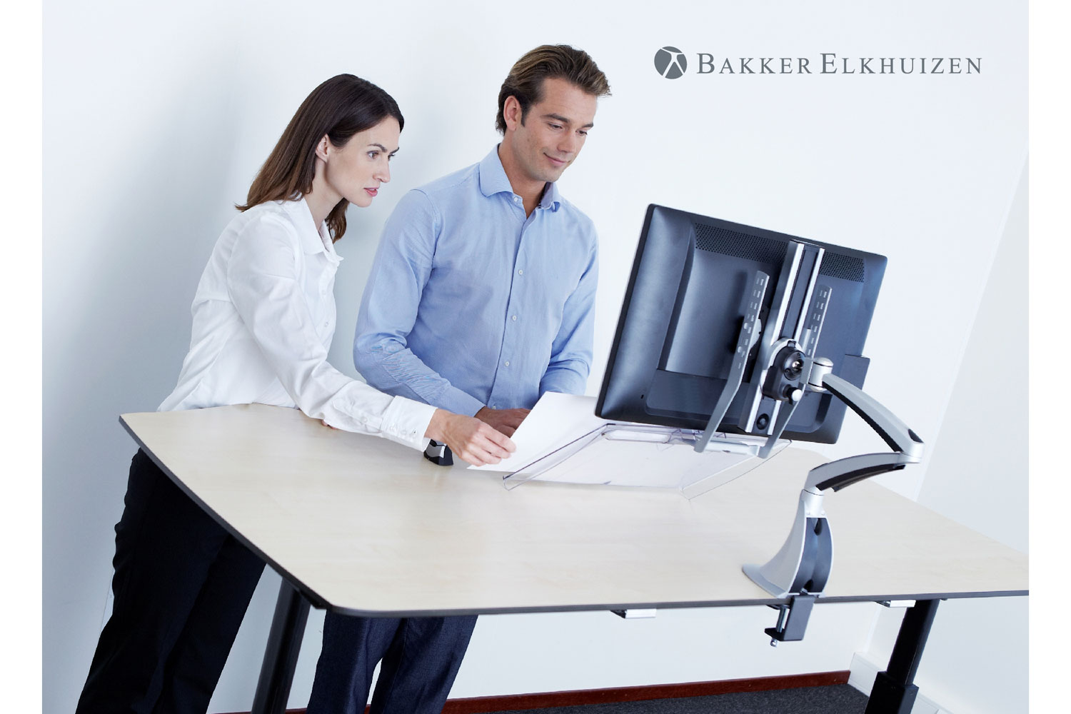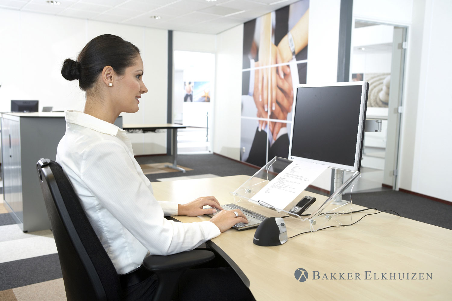 Dokumente, die links oder rechts vom Computer auf dem Schreibtisch liegen, belasten den Nacken übermäßig. Dokumentenhalter von BakkerElkhuizen sind zur Vermeidung von Nackenbeschwerden entwickelt worden, damit Sie angenehmer und effizienter arbeiten können.