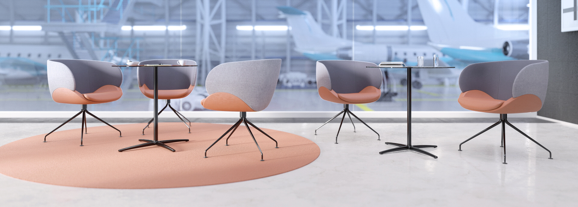 Das Modell CV 870.08 ist auf einem Zentralfuß mit einem vierarmigen Kreuz aus poliertem Aluminium.